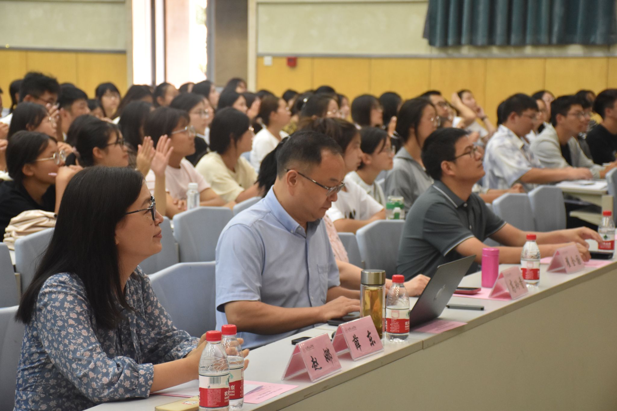 2024级本科生见面会暨入学教育在雁塔校区积学堂举行,党委书记高玲香教授、院长薛东教授、副院长翟全国教授、教师代表赵娜教授、2024级本科生辅导员和435名新生参加会议。会议由党委副书记贾颍辉主持。