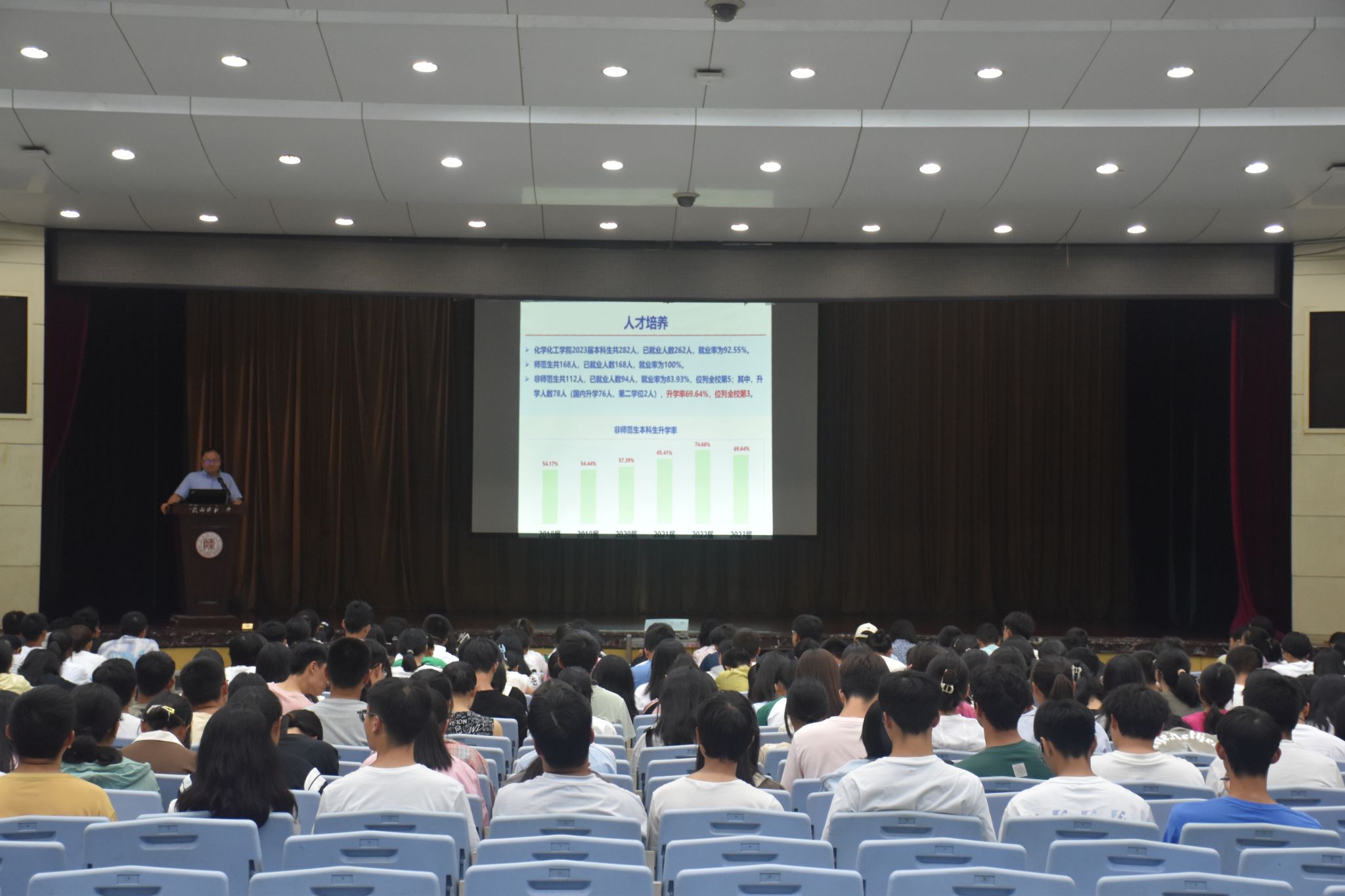薛东院长围绕学院发展历史,学科建设成效和人才培养目标等方面为新生作报告,系统分析了建设教育强国背景下大学生应如何顺应时代要求,在教育强国建设的征程中实现个人理想,号召新时代青年学生要坚定科技报国理想,勇担强国建设使命,为地区经济发展和学院“双一流”建设贡献自己的青春力量。