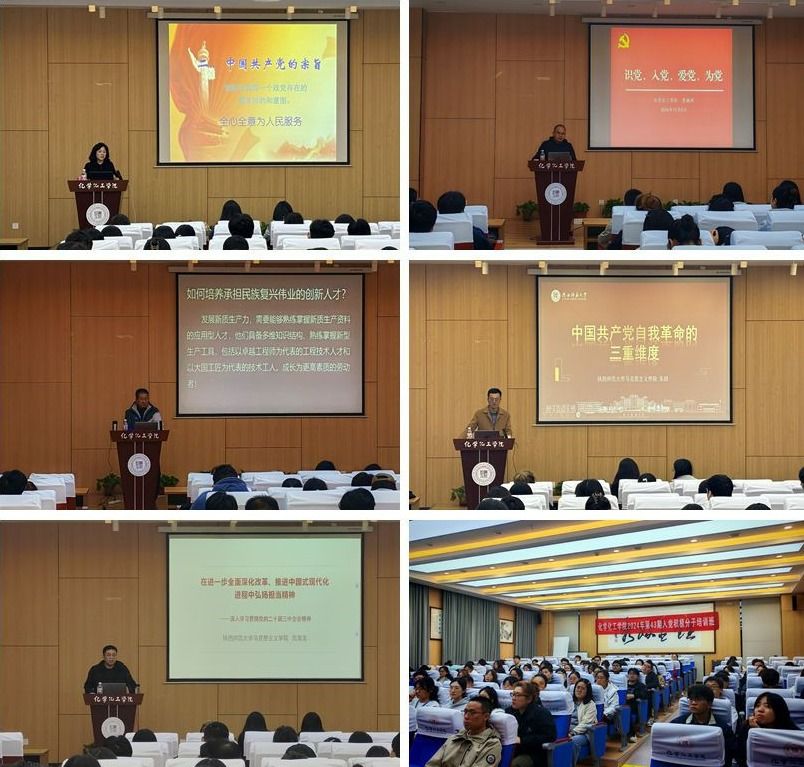 本期培训采用专题报告与视频教学相结合的方式,努力提升教育培训成果。共安排5场专题报告,由学院党委书记高玲香、党委副书记贾颍辉、副院长肖新军,马克思主义学院朱尉和范海龙老师,分别以“党的宗旨、性质和任务”、“识党、入党、爱党、为党”、“正确理解新质生产力的内涵、特征、内在联系及践行方法”、“习近平总书记小说网
