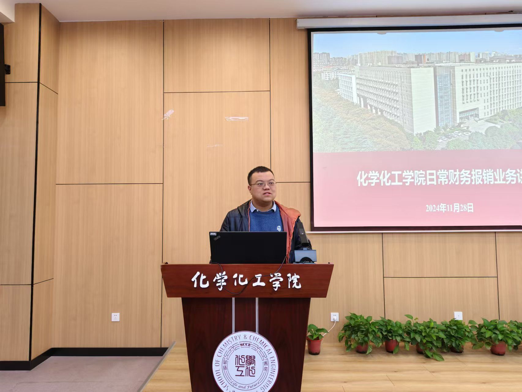 11月28日晚,学院在致知楼1668会议室举行财务助理培训会。实验中心主任严军林,近三年入职的青年教师,学院党政办公室、学工组工作人员和各科研团队负责财务报销的研究生代表参加了此次培训。培训会由行政副院长肖新军主持。