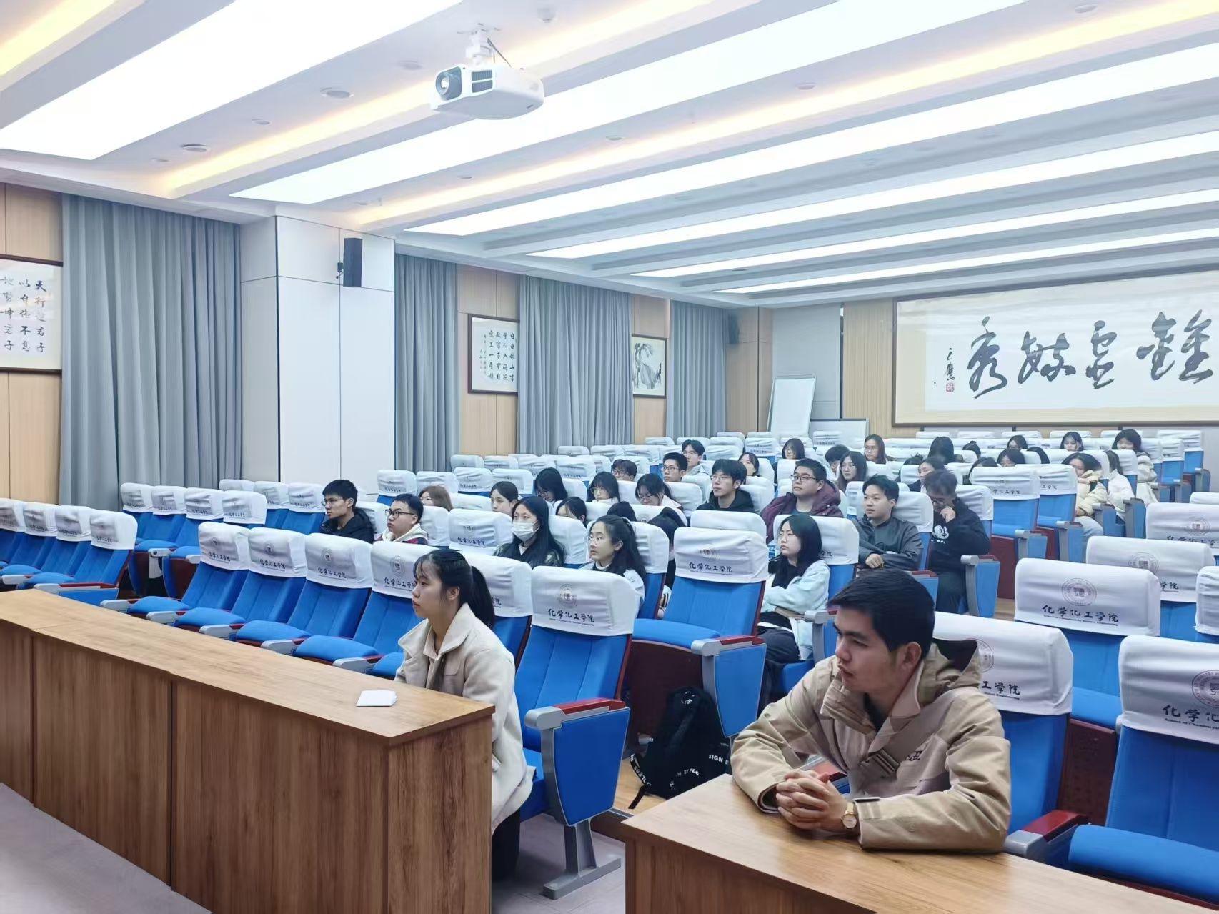 在活动筹备阶段,学院进行了细致安排。在1668会议室设立了分会场,组织2022级本科生以班级为单位有序观看直播,便于同学们集中学习、交流讨论;同时,在致知楼一段南大厅电子屏开启网络直播,方便其他师生随时驻足学习,确保尽可能多的师生能够参与到此次学习活动中来。