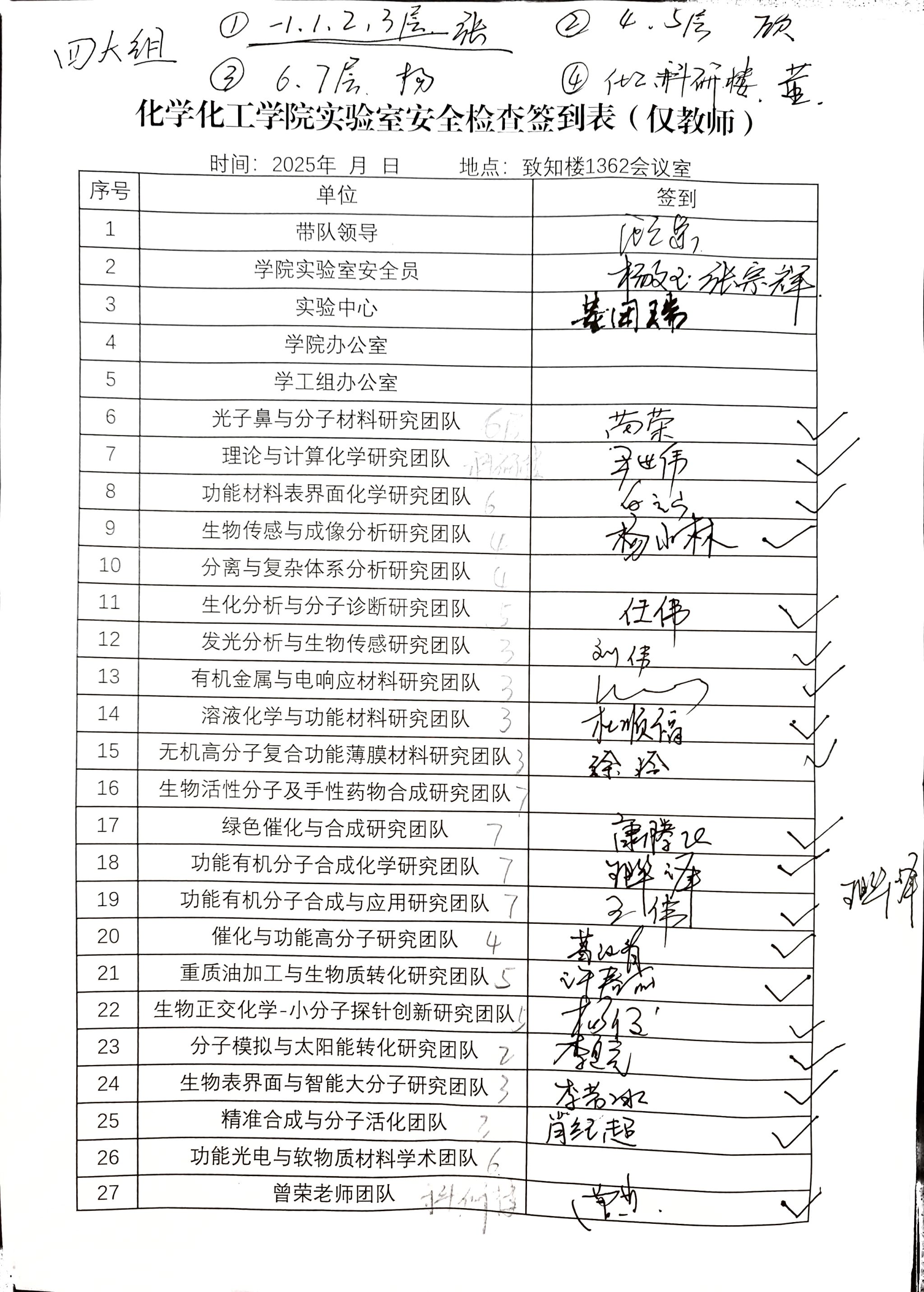 本次安全检查工作会议由顾泉主持,他指出,实验室安全检查工作是学院为筑牢安全稳定的教学科研环境开展的常规工作,需要各位老师时时警惕,处处留心。张宗辉对本次安全检查工作进行详细安排,合理划分检查小组并指定负责人,明确对致知楼、化工楼、科研大楼中的科研实验室、教学实验室及公共区域展开逐一检查。