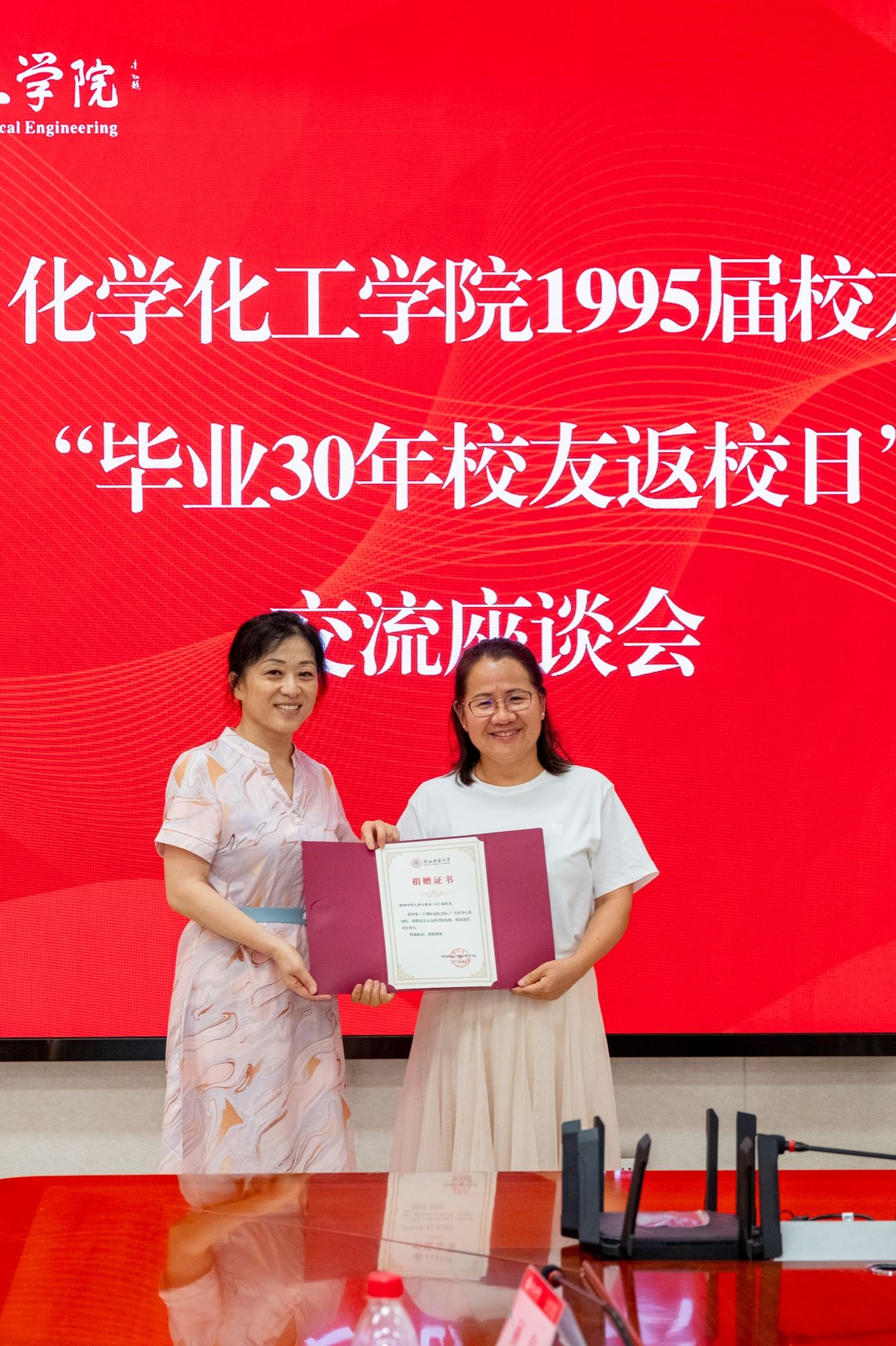在1568会议室召开交流座谈会,学院党政领导班子,时任教师代表郑行望、周宝石以及返校校友参加座谈会。高玲香全面介绍了学院近年来的发展建设情况。她谈道,学院的发展凝聚着一代代化院人的奋斗,希望校友们无论身处何方,都能一如既往地关心和支持学院发展,赓续“西部红烛、两代师表”的精神火炬,担当社会责任,服务国家需求。