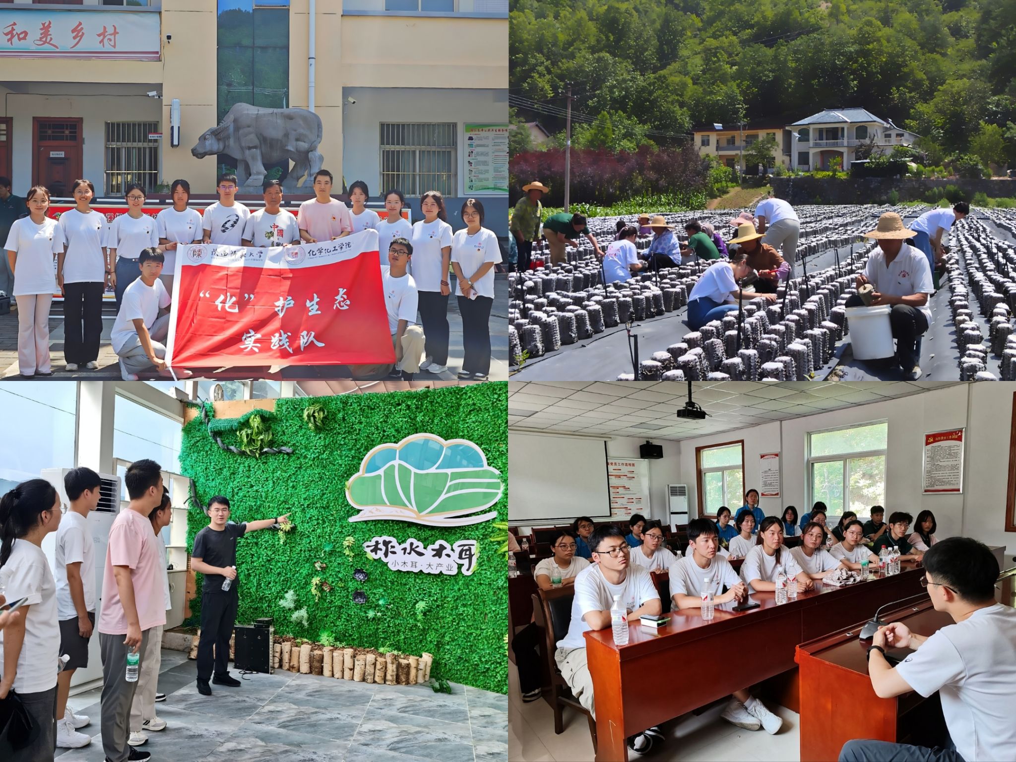 “化”护生态暑期社会实践团队赴商洛市柞水县,围绕“秦岭生态保护”“木耳特色产业”“乡村儿童环保教育”等主题,开展了为期四天的实地调研与服务活动。实践团队结合化学与生命科学等专业背景,通过实地访谈、项目考察、科普教育和文化共建等多种形式,尝试以青年视角切入乡村实际,在田野中寻求知识与社会的结合点。
