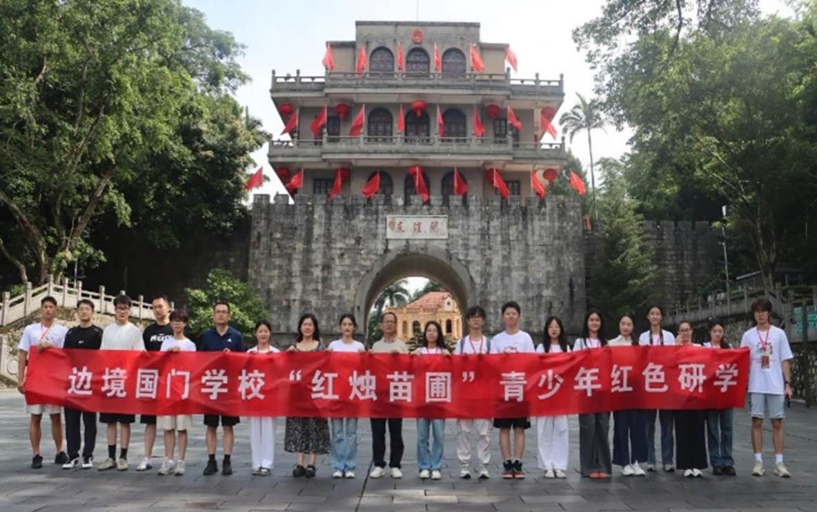 7月17日,实践队赴友谊关开展红色研学。在巍峨的关楼前,队员们肃立在冯子材将军雕像旁,感受历史的厚重,聆听“老臣戍边横刀立,不教胡马渡关山”的豪迈誓言。