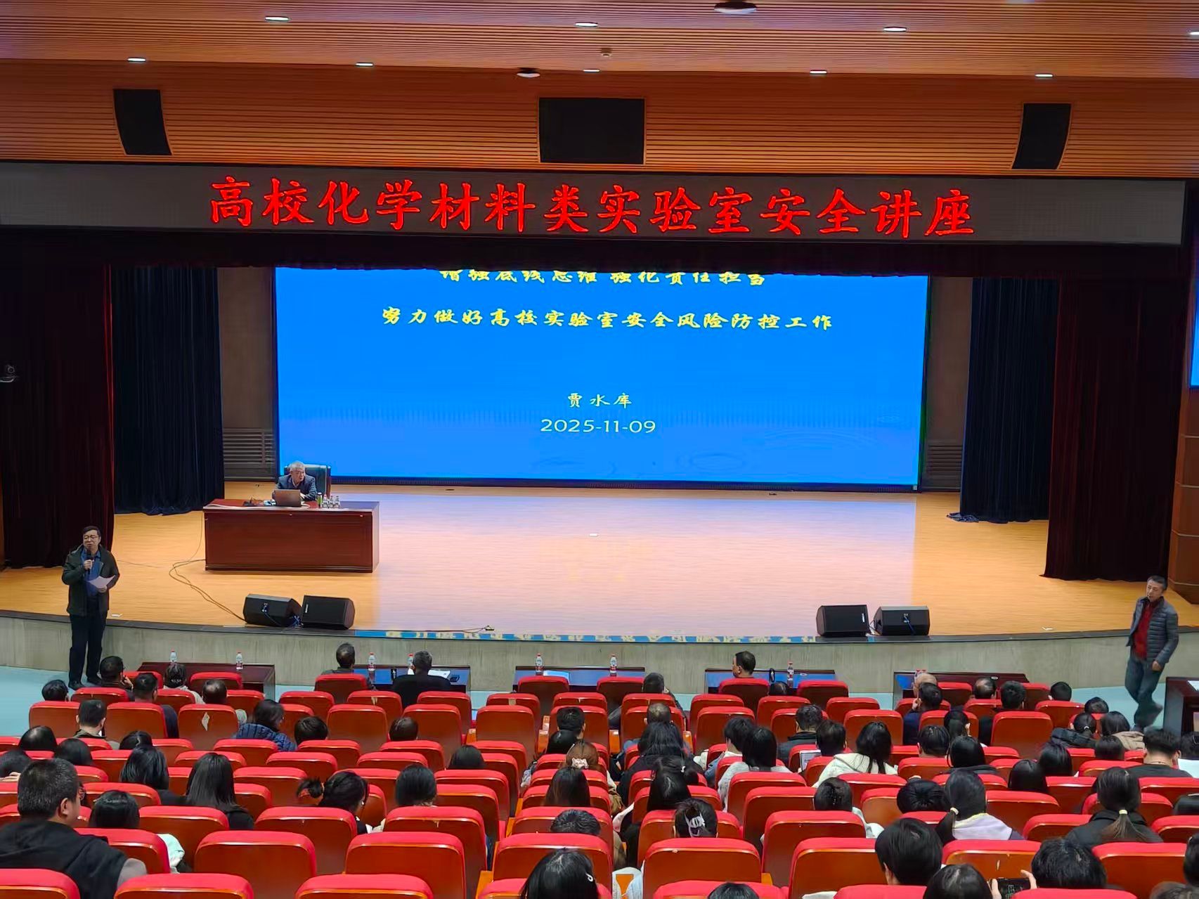 在新勇学生活动中心二层学生剧场开展高校化学材料类实验室安全讲座。党委保卫部部长祁斌业,实验室建设与管理处处长李保新,小说网