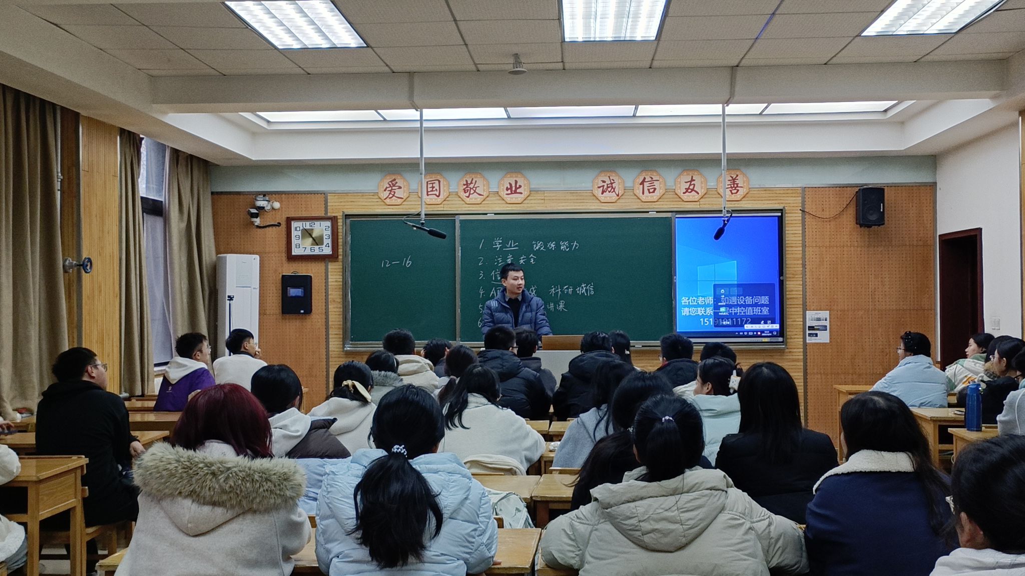 12月11日,赵智豪老师参加化学2504开展的“教授接待日”活动。赵老师结合自身大学经历,着重强调了学业是大学生成长发展的核心根基,叮嘱同学们务必将学业放在首位。同时,赵老师也特别提醒大家时刻重视自身安全,走好走稳求学之路。