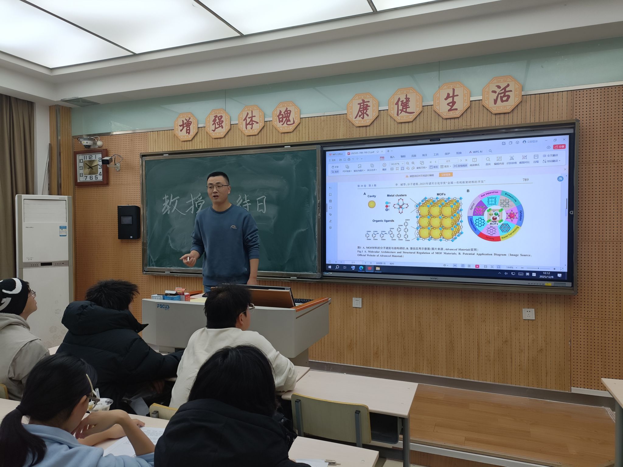 12月8日,乔金宝副研究员参加化学2501班举办“教授接待日”活动。他以“2025诺贝尔化学奖与大学学习方法分享”为主题,与同学们深入交流。本次活动有效拓展了学生对化学前沿的认知,提供了实用的学习方法指导,同学们也表示将把收获转化为学习与成长的动力,立志成长为符合新时代要求的化学人才。
