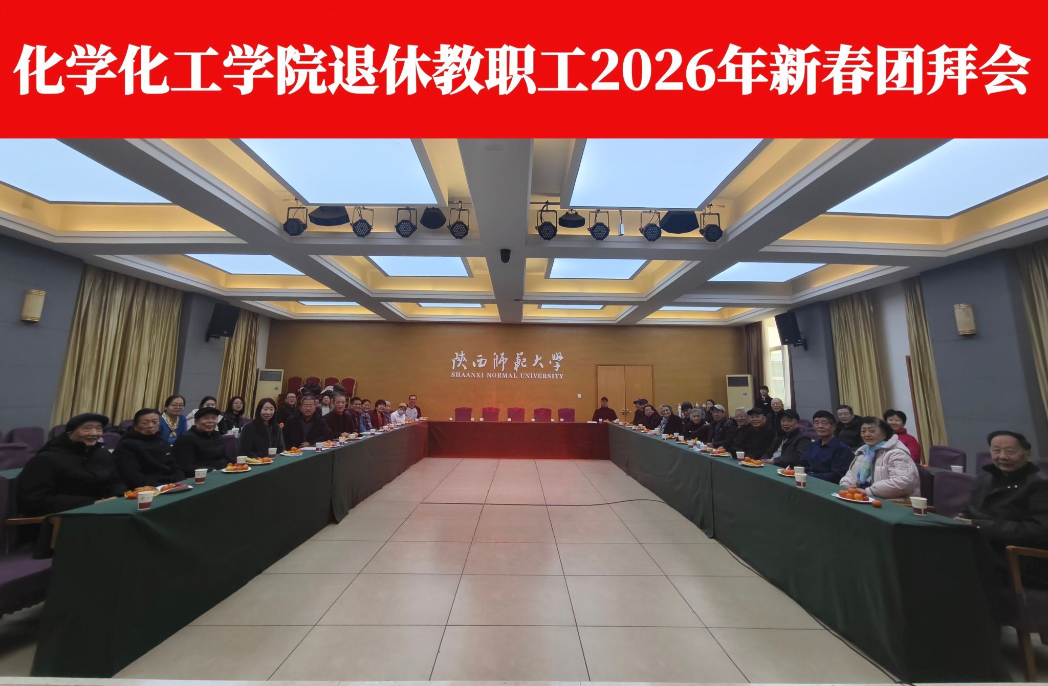 在雁塔校区启夏苑二层多功能厅举行了2026年退休教职工新春团拜会,20余位退休教职工欢聚一堂,其乐融融,共叙往昔情谊,共话学院发展。学院党委书记李保新,院长刘成辉,党委副书记赵雪如,副院长翟全国、肖新军,工会副主席郑浩铨及部分教研室主任、支部书记、工会委员、党政办行政人员参加本次团拜会。团拜会由李保新主持。