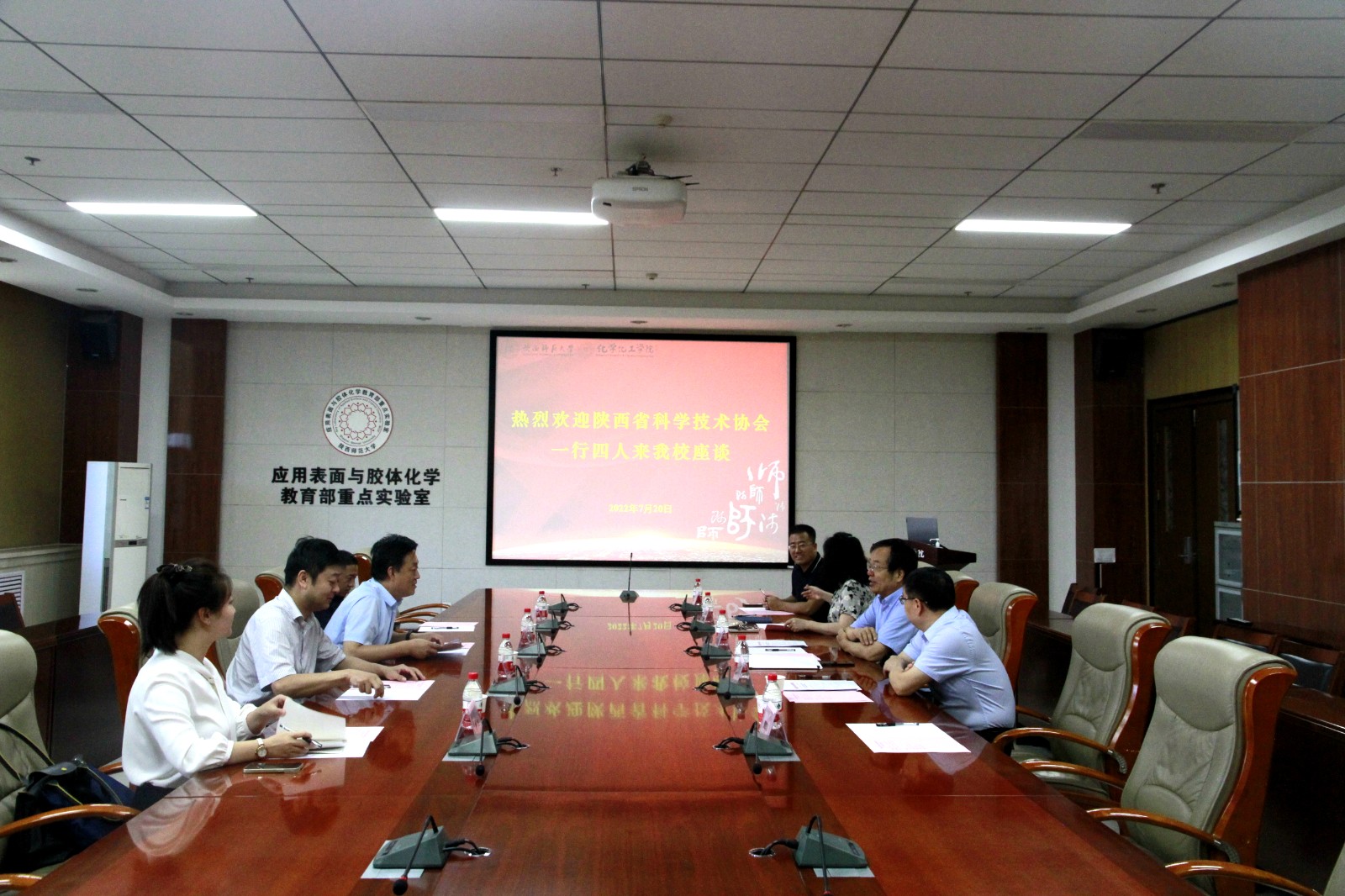 进行调研座谈。参加本次座谈的有省科协党组成员、副主席吕建军,省青少中心主任王童、办公室主任马杰、干部董灿。我校副校长党怀兴,省化学会理事、竞赛委员会办公室主任、校工会主席高玲香,陕西省化学会副理事长、学院院长薛东和省化学竞赛委员会办公室副主任、学院行政副院长肖新军。会议由高玲香主持。