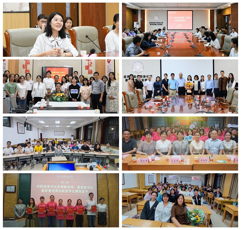 学院通过选树典型、学习先进,使朋辈和名师领航同频共振,进一步提升育人合力。一是重视朋辈激励效能,举行第四届“滴水”奖学金颁发仪式,奖励在专业学习中勤勉务实、成绩优异的优秀学生,勉励同学们扎实学识、奋进担当;二是发挥导师领航作用,9月共开展十余场“教授接待日”活动,组织学生围绕“师范生素养提升”“教师职业发展”“化学课程思政”等话题与学院教授进行深入交流,引导学生不断锤炼道德品质,提升思想境界,努力将“学为人师,行为世范”的好老师要求内化于心、外化于行。三是弘扬师德楷模精神,组织学生深入学习“两代师表奖”获得者章竹君、杨清源、仰孝升等我校育人典型的动人事迹,邀请陕西省教学名师张成孝教授开展“在名师引领下成长:教学名师与师范生面对面”活动,邀请学院毕业生—“2021最美教师”张莎莎召开学习先进事迹座谈会,积极发挥师德楷模在师范生养成教育中的引领示范作用,勉励学生接续传承师大精神和学院文化,以高远的志向砥砺奋进力量。