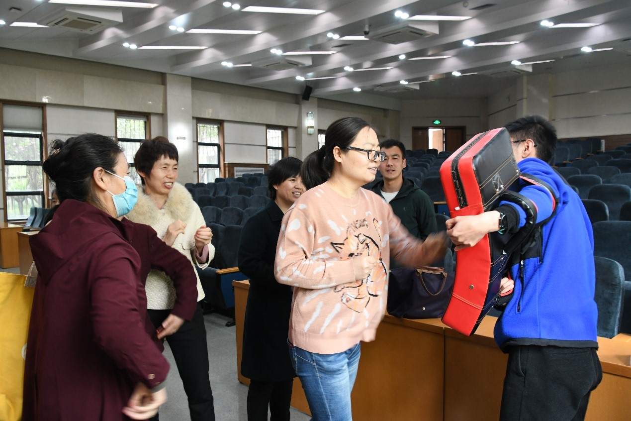 讲座结束后,池教授向在场师生讲解了应变力运动-拳击运动,如何发力和自我保护,随后师生们纷纷体验。本次活动为师生们打开健康之门,了解了如何正确预防和延缓骨质疏松,同时也提醒师生们在工作之余应当加强体育运动,健康的体魄才是生活和工作之本。