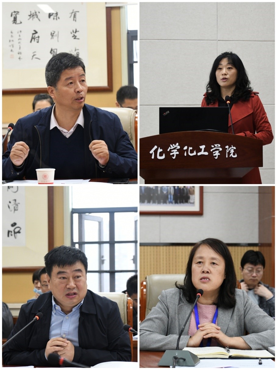 学院党委书记高玲香从依托学科的基本情况、本科人才的培养特色及以认促建持续改进等三个方面介绍了工作推进情况;副院长焦桓紧扣化学专业认证各项准备工作进行了汇报,并征求了与会人员的意见建议。