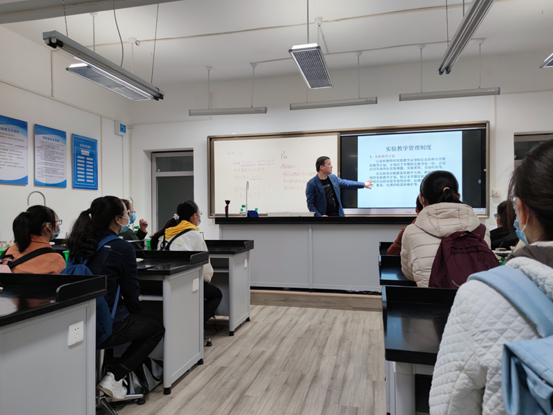 附属中学的老师们对同学们的到来表示热烈欢迎。实验室董老师带领同学们参观了实验室,耐心地讲解了实验室内的规章制度,实验老师必备素养以及实验教学中应注意的问题。董老师的讲解让同学们对基础实验教学工作有了更深入的了解。随后,同学们进入唐秀花老师的公开化学课堂——“可逆平衡与化学反应”,老师将理论课与实验相结合,巧妙地设置教学情境,激发了学生的学习兴趣,给予其思考与启发。同学们也紧跟老师思路,学习着老师的授课方法,技巧等。