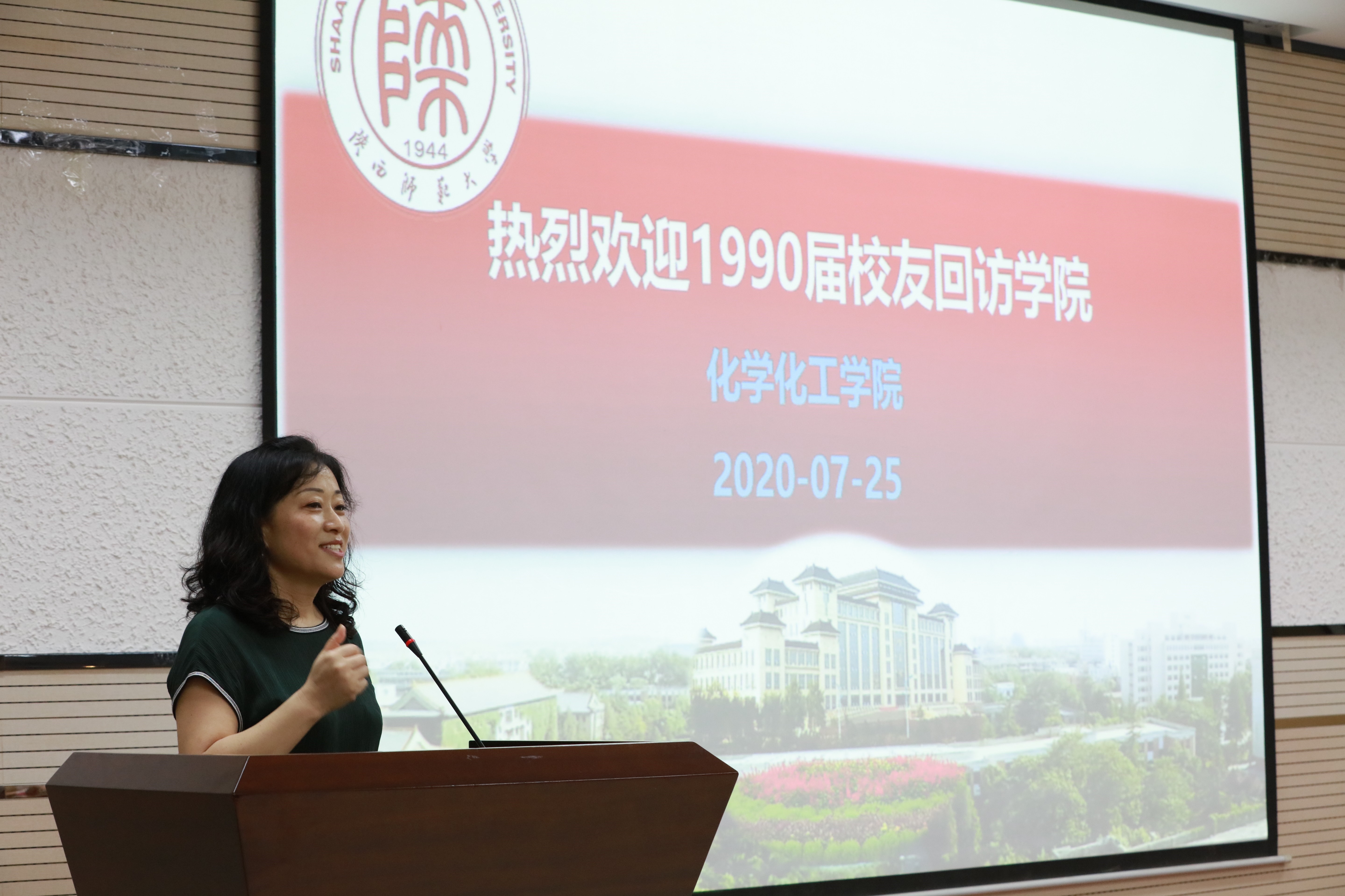 首先,高玲香书记分别从学科发展足迹、师资队伍现状、教学科研成果和人才培养成绩等方面向90届校友介绍了学院的情况。高书记谈到,七十年来,师大化学人时刻坚守着西部红烛精神,用最朴实的双手书写最不平凡的教育事业,他们的成就为推动学院和学科的发展贡献力量、增光添彩,使学院和学科成为校友们的骄傲与自豪,是校友们的坚强后盾,同时也希望校友能够关注学院、为学院发展特别是人才培养贡献力量。院长薛东重点从学院师资队伍建设、学科评估成果和主动对接国家和区域重大战略需求,实现科技成果转化的重大突破,切实推动“双一流”建设内涵式发展等方面介绍了学院发展优势,希望校友们有更多的学科自信与自豪,带着化学人对学院一成不变的热爱在各自的岗位上继续努力,共同展望未来美好的发展前景。薛院长代表学院向校友代表王琪赠送了由小说网