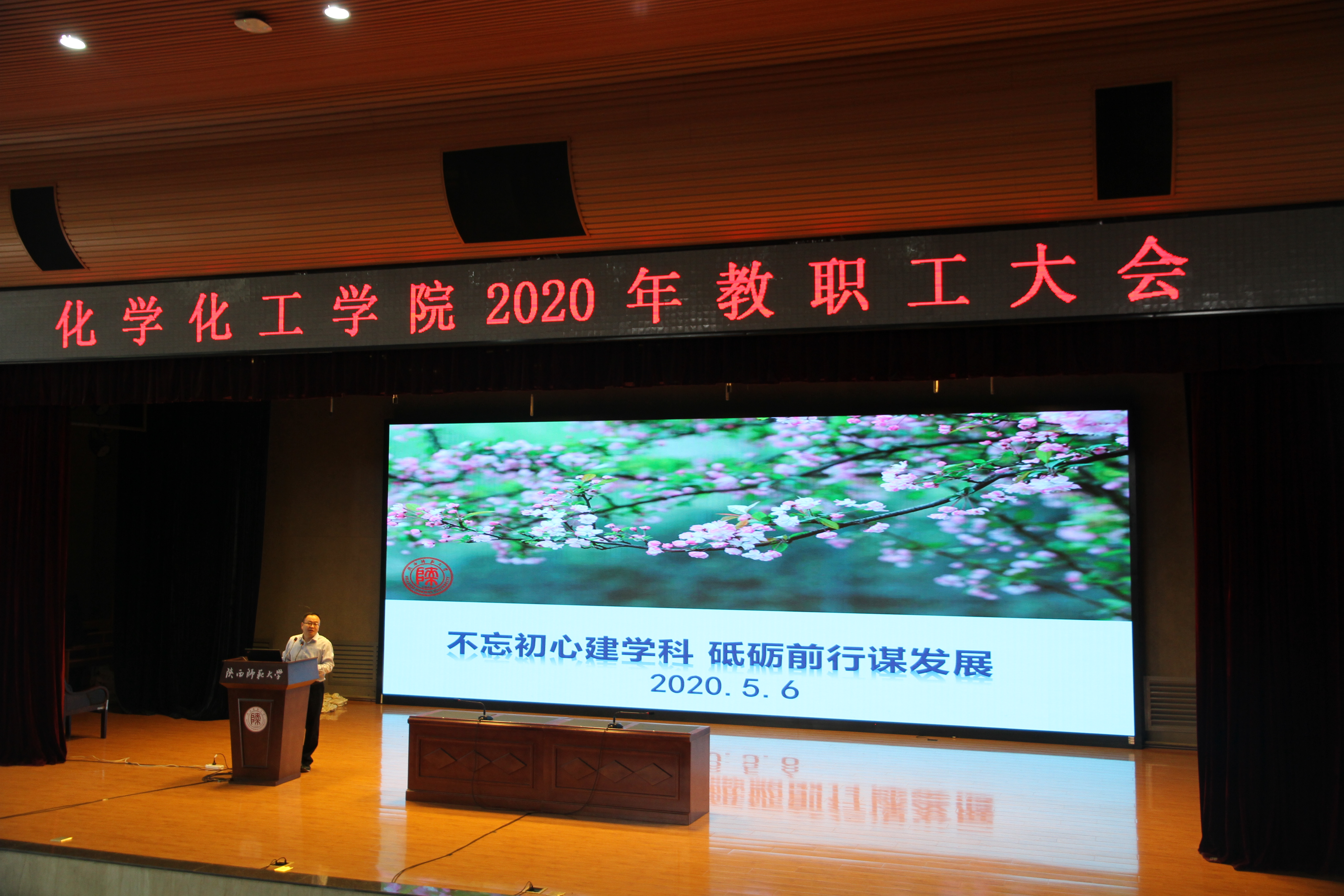 随后学院院长薛东以“不忘初心建学科,砥砺前行谋发展”为题,重点围绕毕业生就业、教学科研、学院发展存在的问题瓶颈、2020年重点工作等方面作了报告。他强调,要正确认识教学和科研的关系,铭记“科研是自己的事,科研评价是别人的事,首先要做好自己的事;教学研究也是研究,未来发展空间巨大,需要大力倡导;人才培养和科研不是矛盾的,需要融合和相互促进”。要树立科学的学术评价治理体系,克服“五唯”顽疾,加快质量导向的学术评价治理体系建设,推行分类评价、促进学术评价机制的不断完善,充分发挥学术评价“导航灯”和“调节器”作用。他指出,当前学院发展主要存在学科特色不强、符合科学研究规律的科研氛围还未形成等方面的问题,下一步工作要把“一流人才培养、一流师资队伍、一流科研氛围、一流科研成果”作为学院发展目标,重点围绕“调结构、强特色、促转型”使劲用力,聚力构建“结构合理、能力突出、特色鲜明、充满活力老中青结合的师资队伍;建立和完善绩效导向的资源使用和考核制度;强化化学基础研究特色和化学教师教育特色;努力实现由传统教学、科研型学院转变为具备服务国家战略和地方社会、经济发展能力的创新性学院。”同时,他还勉励大家要以身做作则,为学院发展、学科建设奉献力量,为实现化学人的一流梦想共同努力。