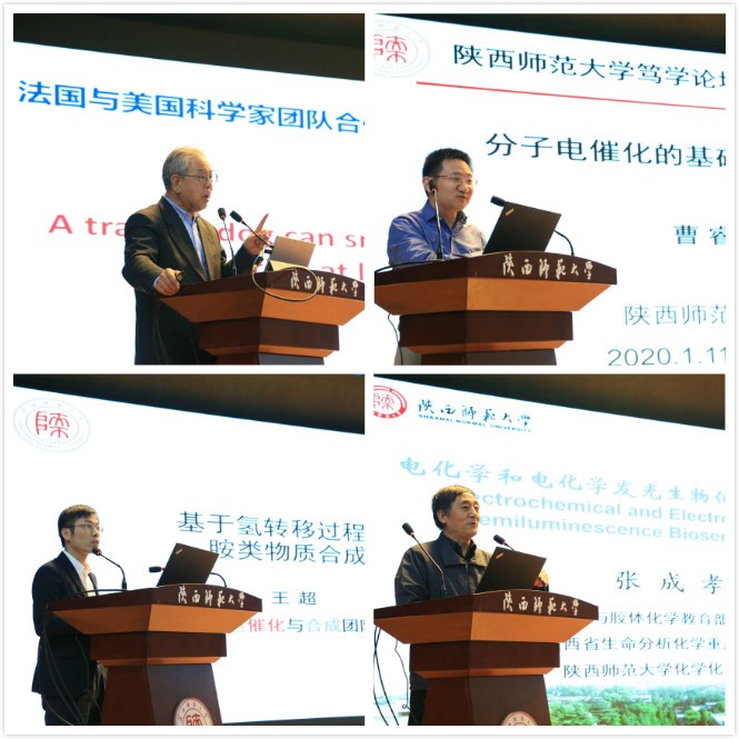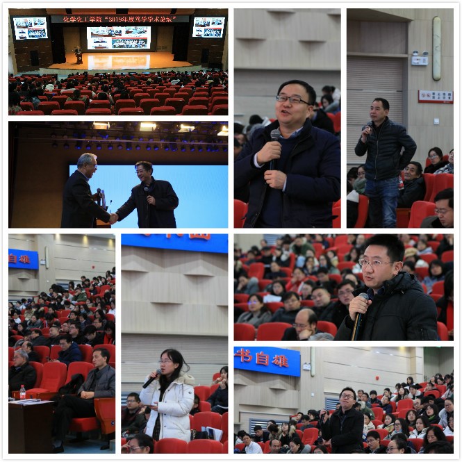 开幕式结束后,学院各学科学术带头人、优秀青年学者房喻、张成孝、李兴伟、白俊峰、曹睿、王超、杨鹏、王长号、翟全国、何晓明、刘成辉、赵娜等老师,分别作了题为“分子凝胶和凝胶乳液——从气凝胶到高性能多孔材料”“电化学和电化学发光生物传感研究进展” “经底物活化实现不对称碳氢键活化与转化” “Metal-Organic Frameworks from Multidentate Carboxylate Ligands with the Additional Function Groups:New Methodology(Structures),High Performances,New Property,and Perspectives”“分子电催化的基础和应用研究”“基于氢转移过程的胺类物质合成”“蛋白质基功能高分子表界面”“人工核酸金属酶的组装及其手性催化功能”“三核簇基金属—有机框架”“超分子聚合物以及光电功能高分子”“面向液体活检的核酸标志物分析”“细胞器成像及诊疗分子探针”的专题报告,介绍了各自研究方向的具体内容、研究成果和后续工作设想,并与与会师生展开了热烈的讨论,报告会内容丰富精彩,既有基础科学研究,又有产业化研究,同时也有科研感悟。整个论坛气氛热烈,互动交流此起彼伏。