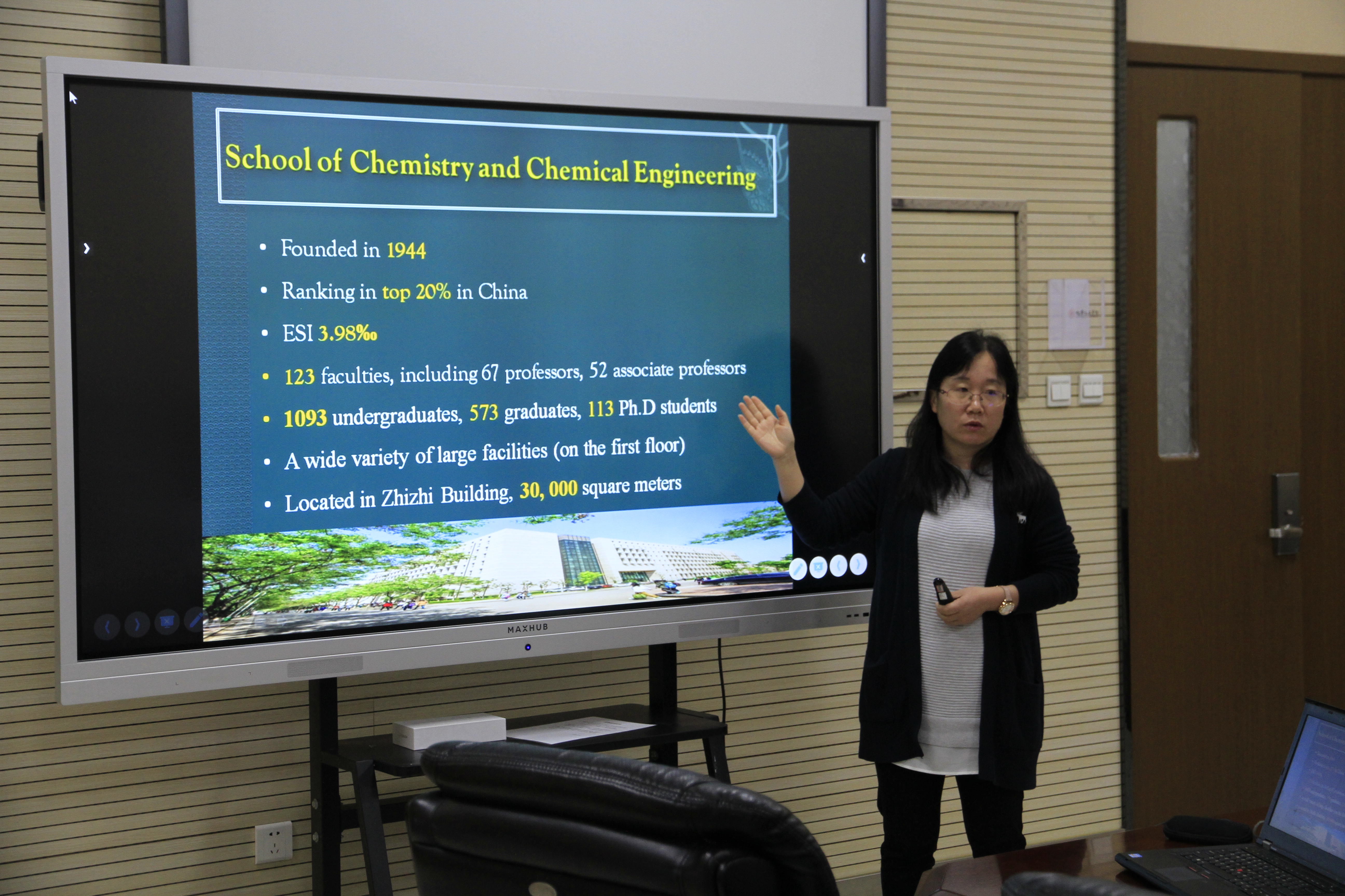 的学科、师资队伍、科研特色等情况,以及与留学生教学相关老师的职责和新进留学生的专业分布情况,强调了来华留学生培养的课程要求、学位授予的科研要求,并特别指出要遵守学术道德,预防学术不端行为。最后她期望留学新生能够刻苦学习,学有所成。会后,师生之间就留学生提出的问题进行了互动和交流。