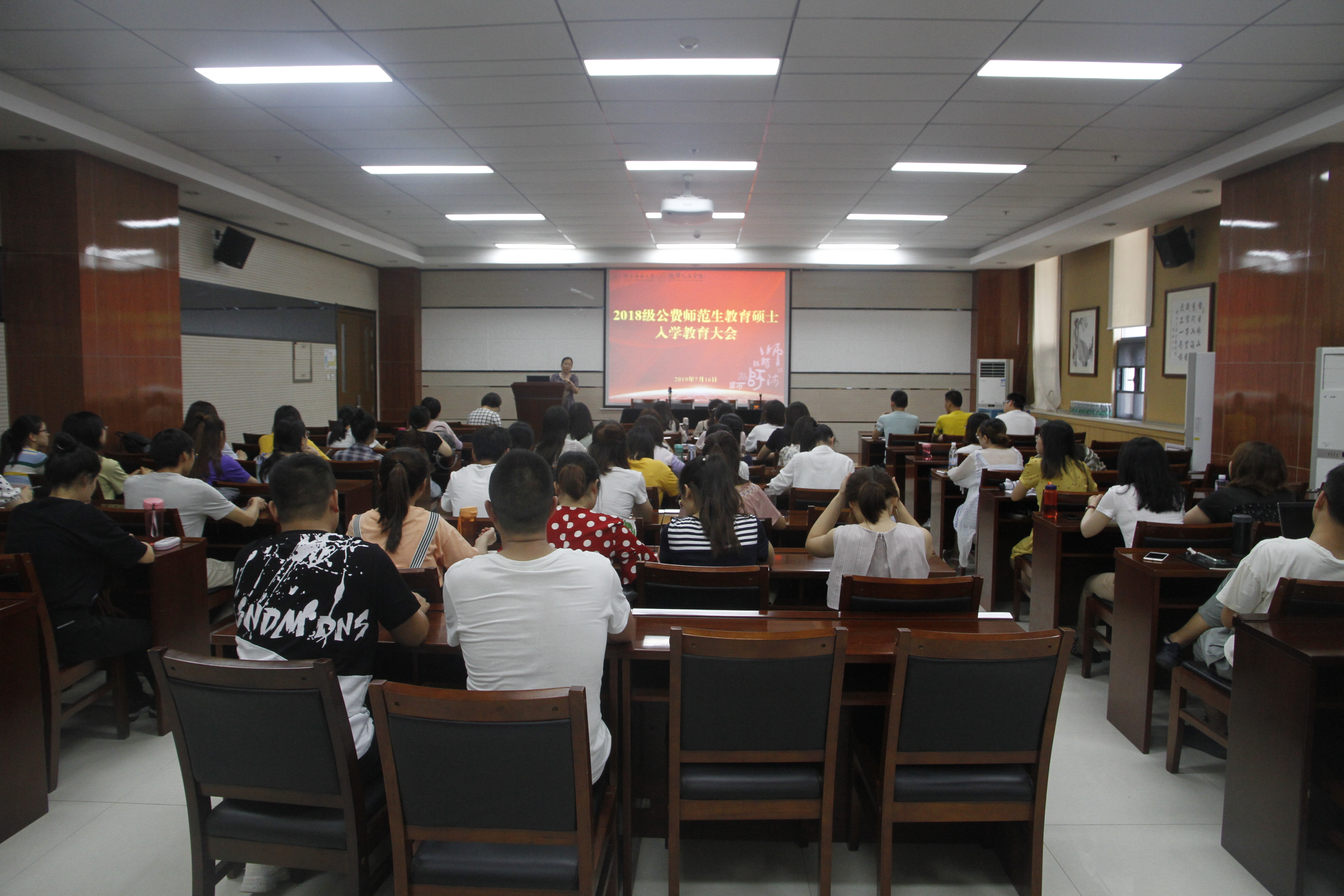 2018级公费师范生教育硕士入学教育大会在致知楼1668报告厅举行。副院长丁立平、研究生辅导员牟朝丽、公费师范生教育硕士秘书曹凯超以及2018级公费师范生教育硕士新生出席了本次会议。