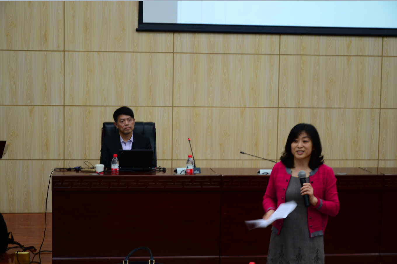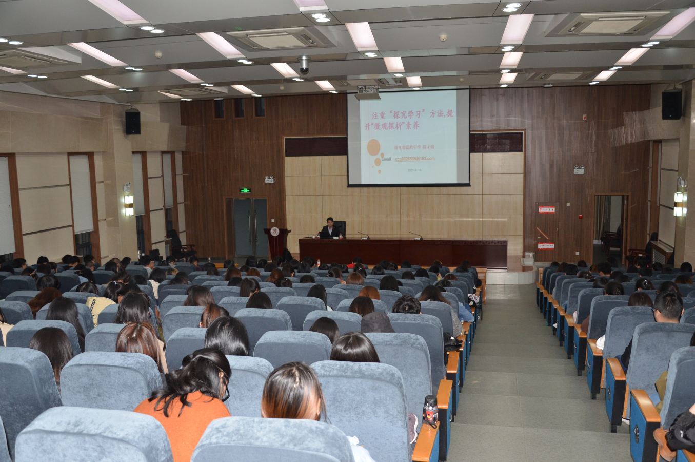师范生在文澜楼B段一层报告厅做了题为《注重探究学习方法,提升微观探析素养》的报告。报告由学院党委书记高玲香主持,学院党委副书记王晓、团委书记陈钿、辅导员谢遵园老师以及2015级和2016级师范生参加了本次报告。