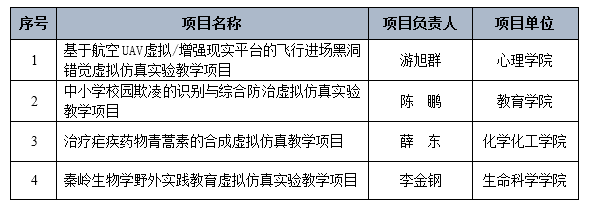 我校本次获得国家项目认定的虚拟仿真实验教学项目