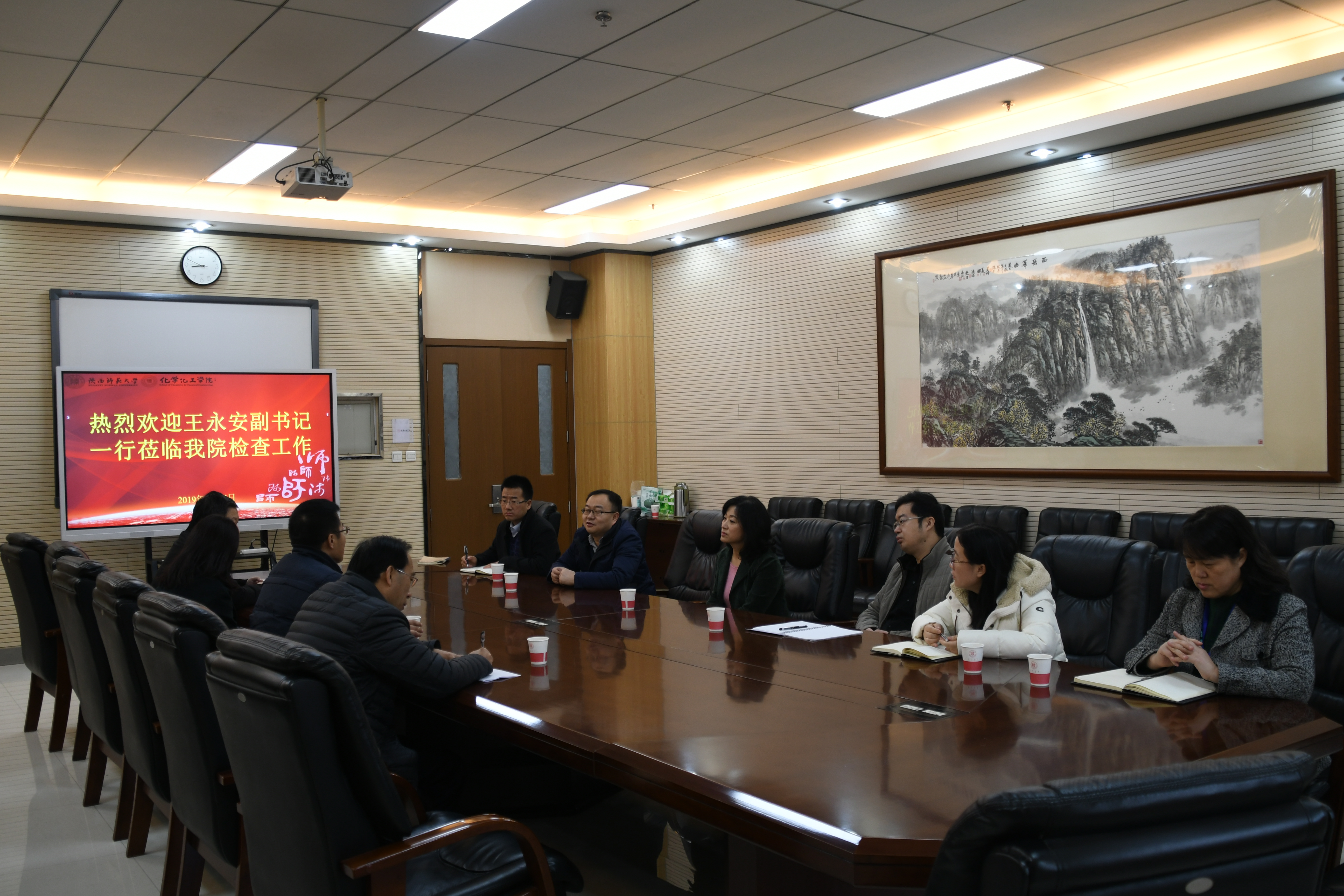 2019年2月25日,新学期伊始,我校党委副书记王永安,党委学工部部长(学生处处长)刘少锋,学科建设处处长姚若侠,实验室建设与管理处处长郭建中一行来小说网
