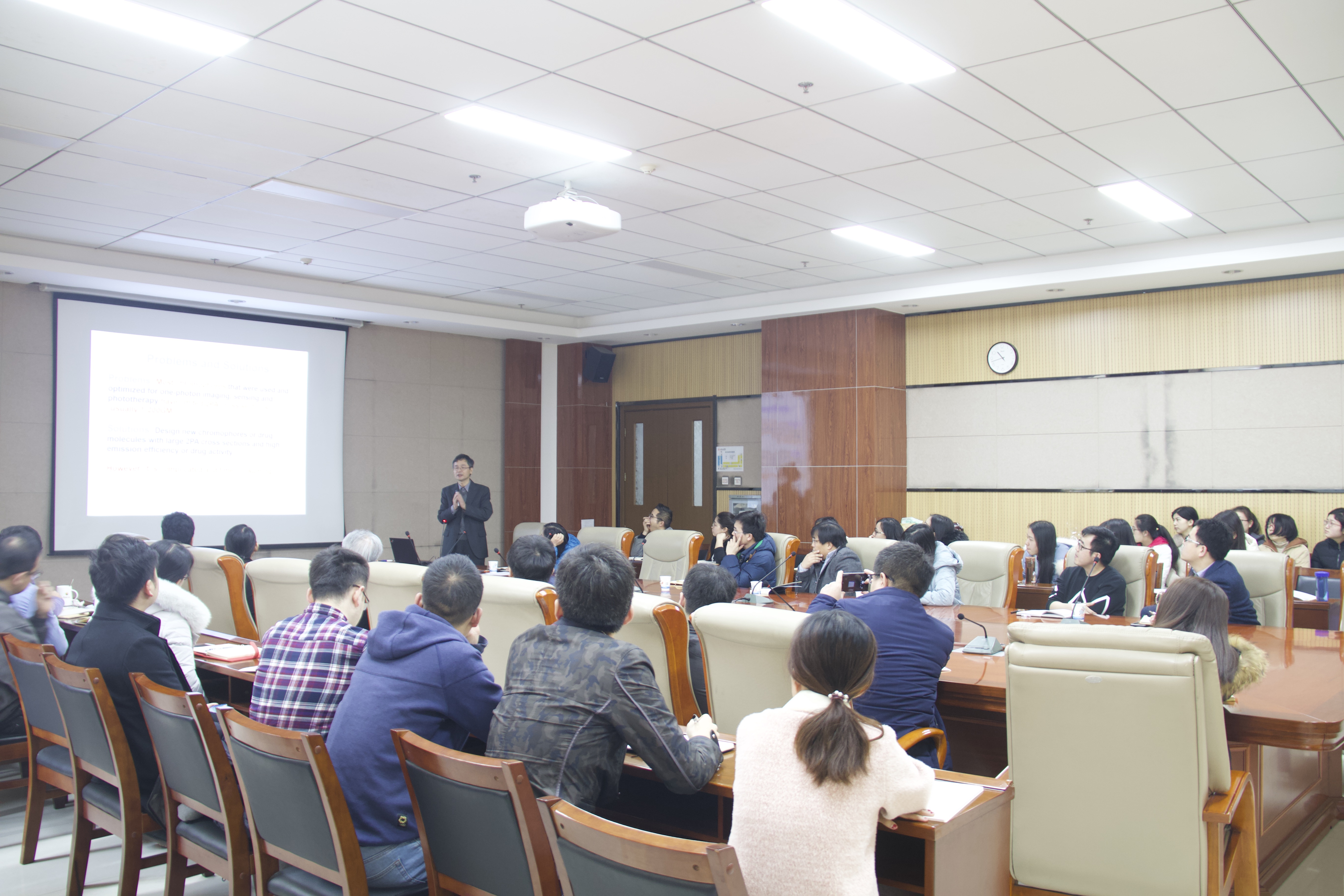 报告中,他首先介绍了纳米复合材料在生物化学领域的应用前景及荧光共聚物纳米复合材料在生物传感应用中共振能量转移的条件、光信号放大机理。随后介绍了金属纳米颗粒等离子体增强双光子光致发光的研究背景,其课题组在贵金属纳米颗粒增强等离子体双光子光致发光研究中取得的系列进展,并讨论了这些新材料在双光子传感、双光子生物显影以及光治疗等领域的应用。报告后,小说网