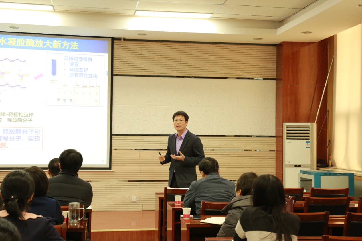 杨朝勇教授详细地介绍了其课题组近年来的工作成果,主要围绕即时检测(如何建立特异,灵敏,简单,便捷的即时检测方法)、液体活检(基于微流控芯片的疾病筛查新技术)、单细胞分析三个方面的研究工作进行了精彩的讲解。报告会后,小说网 师生与杨朝勇教授作了进一步的探讨与交流,提问环节现场气氛热烈,此次报告会使小说网 师生受益匪浅。