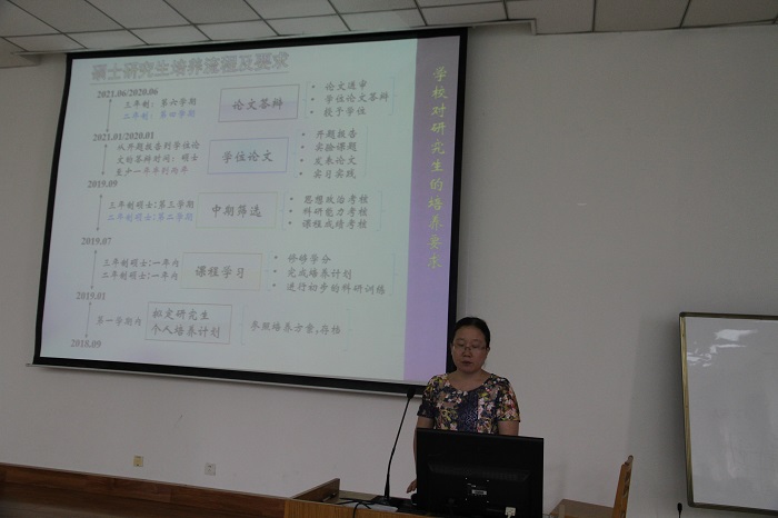 丁立平副院长详细解读了学院研究生培养的相关问题,介绍了研究生培养流程、要求和特色改革,研究生的奖助情况以及研究生期间的学习生活。她强调了学术道德是底线,不能触碰,在学术研究中同学们应实事求是,杜绝弄虚作假。