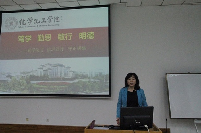 勤学励志、慎思笃行,守正明德的优良学风,强调了学院以为社会输送才德兼备的人才为宗旨。随后,高玲香教授向同学们抛出问题“为什么学习化学?”,而她则以介绍学院院徽“化学——我们的生活,我们的未来”切入,提出,化学是人类发展的根基,是创造新物质最多的学科,因此我们化学人要有对学科的高度认识,要有学科自豪感,更要有敢为人先的科研态度。接着,高玲香教授从学院发展、学科定位目标、学院师资队伍、学科优势特色及学院科研平台建设这几个方面对学院做了基本介绍。并从科研育人、课程育人、教研育人、学术育人、全员育人、实践育人、文化育人、环境育人八个角度与同学们分享了学院的育人理念,帮助大家理解学习了小说网