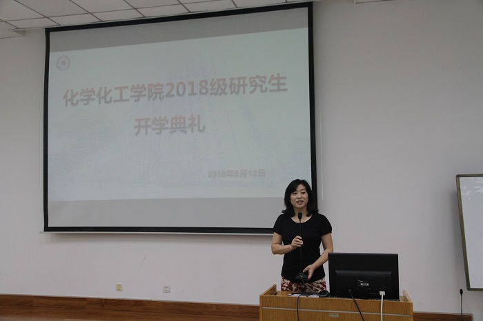 高玲香书记隆重介绍了出席本次会议的各位老师,并代表学院全体教职工对2018级研究生表示了热烈欢迎 。高书记代表学院对同学们寄予了很高的期望,并指出同学们只有脚踏实地,勤学苦干,才能实现自己的科研目标。