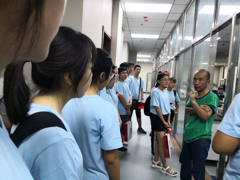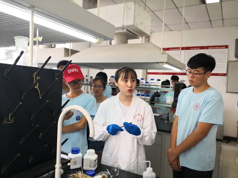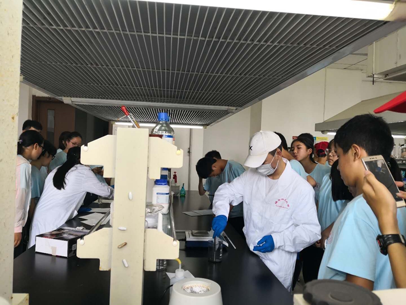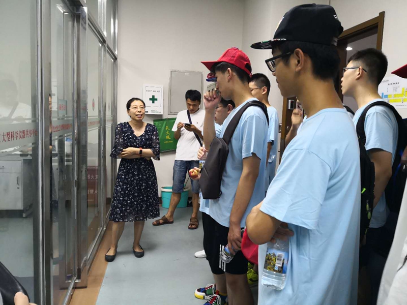 6名本科生就高考填报志愿、专业选择、学院情况、就业情况、学院专业认知以及其他关心的问题进行了深入交流。随后,学院组织营员观看了化学兴趣实验演示,并在教育部重点实验室副主任严军林、刘凯强、樊娟和何攀四位老师的讲解中,参观了大型仪器平台。