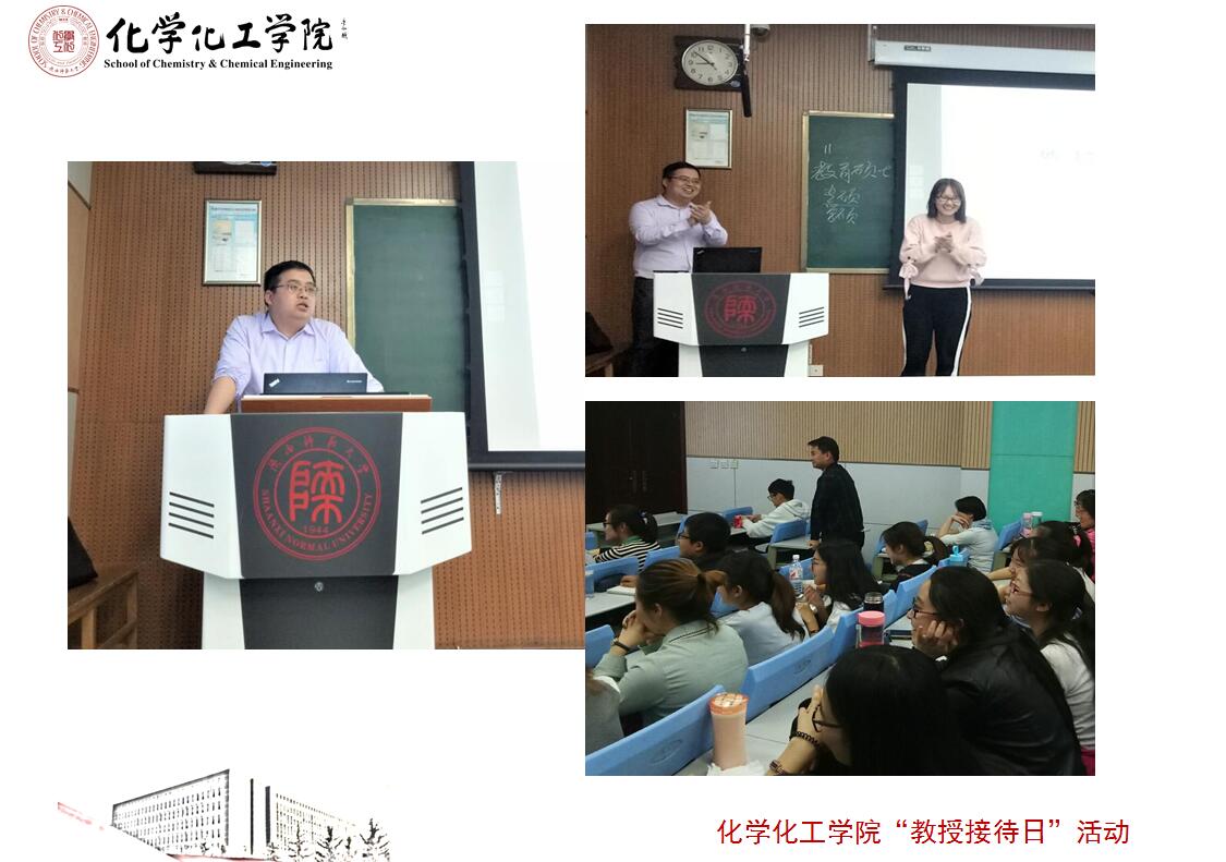白云山副教授应邀参加了2016级化学三班的教授接待日活动。首先,班级组织委员介绍了白老师的工作经历和主要成就。接着,白老师讲述了自己的工作经历,并为同学们分析了当前的社会状况和未来发展环境。随后,老师就其涉及的实验领域给学生们讲述了实验室设备及科研成果。