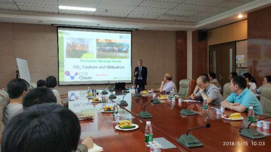 阻止二氧化碳废气进入大气层造成全球变暖和气候变化依然是本世纪人类面对的主要挑战之一,Michael North教授向大家详细介绍了多年来他与他的团队在二氧化碳捕获和利用方面的研究经验和取得的成果,报告主要围绕CO2吸附材料Starbons、电解生产碱式碳酸铝和环状碳酸酯催化剂展开。其后,Michael North教授介绍了课题组另一新取得的成果,以太阳能电池为电源,以海水为电解质,通过电化学过程将CO2转化为碱式碳酸铝,在此过程中,不仅吸收了CO2,还可以将废铝、废铁变废为宝,重新利用。最后,针对CO2和环氧化物制备环状碳酸酯这一经典的CO2废气循环利用途径中存在的反应条件过于苛刻问题,Michael North教授介绍了课题组十余年来潜心研究并商业化的催化剂的设计改造和应用。