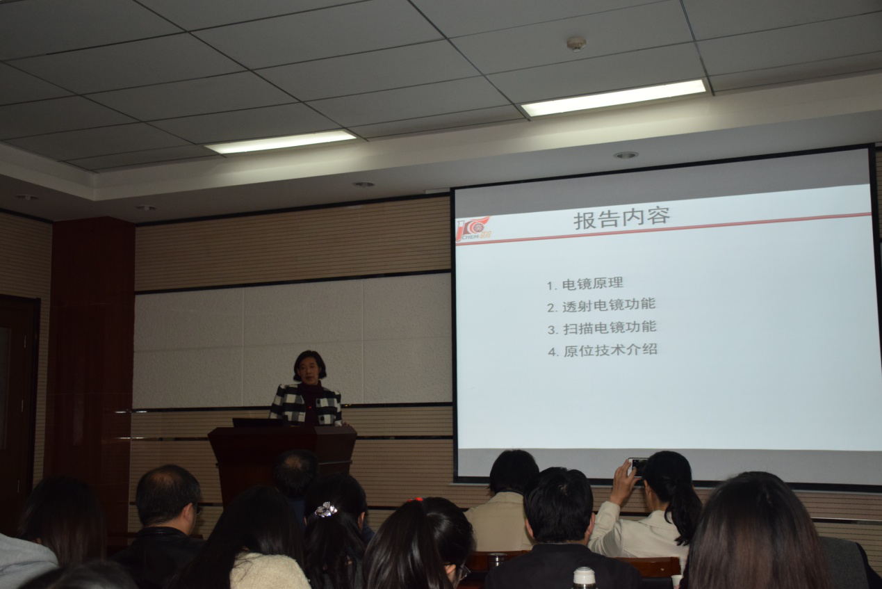 实验中心办公室主任杨文玉老师、专业实验室严向阳老师、大型仪器管理平台何攀、刘凯强、左萍等老师及部分研究生聆听报告。报告会由焦桓教授主持。