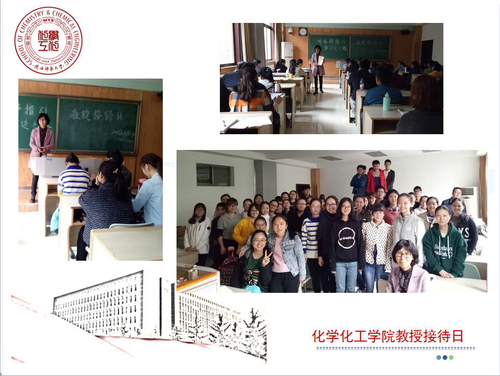 10月27日,高玲香教授应邀参加了2015级应用化学一班的教授接待活动。面对同学们 “考研与否”的问题,高老师鼓励同学们挑战自我,尽量往高处走,并对考研方向、学科区别等问题进行解答。她指出,挑战是一件快乐的事情,趁着年轻就要吃得起苦,并用“大雪压青松,青松挺且直”的诗句告诫同学们应像雪松一样面对繁重压力,同时也要学会自我减压。面对有同学提到在实验室里重复性的实验会使人厌烦的情况,高老师建议同学们把它当做是对自己意志的磨练,并告诫同学每个过程都是一种学习,应当学会学习,并树立“活到老,学到老”的终身教育理念。