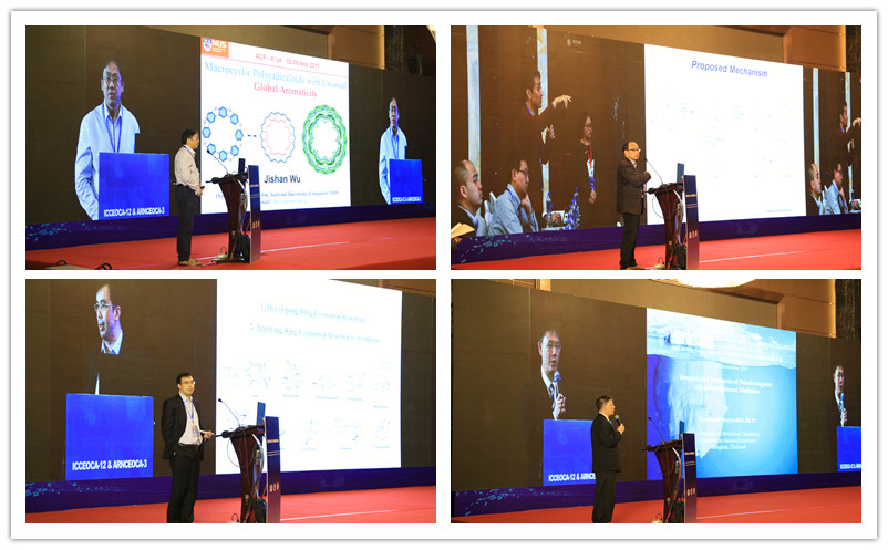 2017年11月4日,来自新加坡国立大学吴继善教授、韩国Chonnam National University的Sunwoo Lee教授、北京大学余志祥教授、泰国Chulabhorn Graduate Institute的Poonsakdi Ploypradith教授、台湾国立中山大学的吴明忠教授从有机方法学、环加成反应、全合成等方面将有机化学的不同领域的最新研究成果呈现给与会代表,并和与会代表进行了深入的讨论。我校小说网 的王涛博士作了一分钟报告和墙报展示。
