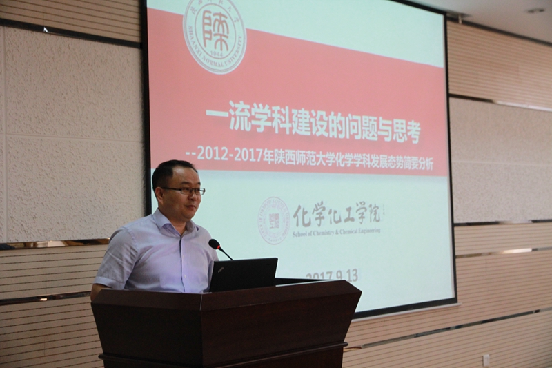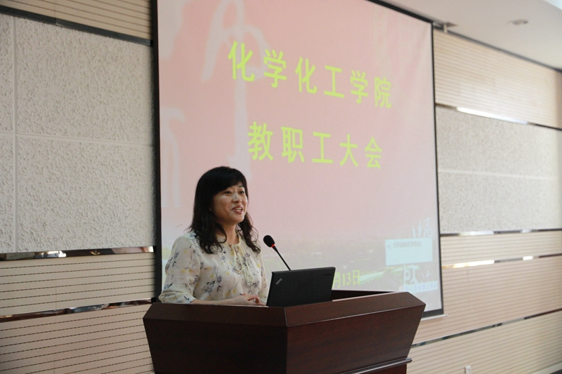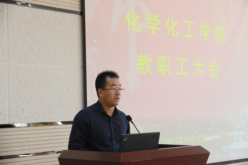 最后,薛东对学院本学期重点工作进行了部署。分析了近五年我校化学学科发展势态,指出化学学科发展的优势与劣势,提出了如何提升我校化学学科的思考与对策。他要求全院教师在强调论文数量的基础上关注论文质量,并增强院内、国内、国际科研合作。之后薛东提出学院本学期的三项重点工作:一、更加重视人才培养质量的提升。把人才培养作为学院的重点工作来抓,加强人才培养质量的管理;二、更加重视人才引进和教师成长工作。按照教师的专业特长和发展潜力推进培养工作,既要重视青年人才成长,同时也要重视现有教师的发展,有效推进“教学名师”和“腾飞人才”培养计划;三、全面提升科学研究、成果转化及服务社会的水平和能力。加强重点、重大项目培育能力,加大国家级、省部级奖励培育力度,提升服务地方经济能力,完善学院科研考核办法。