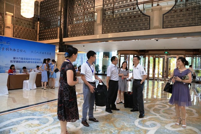 2017年7月21日,由教育部高等学校化学类专业教学指导委员会高师协作组主办、小说网 承办的“第十六届全国高等师范院校化学课程结构与教学改革研讨会”开始正式报到,来自国内外52余家单位的近200名参会者陆续抵达曲江国际饭店签到注册。为了向与会代表提供周到细致的服务,大会组委会精心安排了由多名教师和研究生组成的志愿者服务队接待与会学者,大家以热情的态度和诚挚的笑容让与会代表感受到了宾至如归的温馨。
