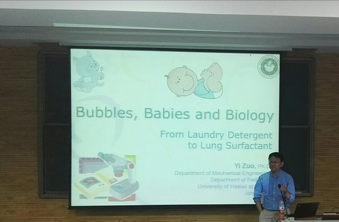 邀请,夏威夷大学机械工程系左燚教授在雁塔校区5101教室为2015级本科生做了题为“Bubbles, Babies and Biology – from Laundry Detergent to Lung Surfactant”的学术讲座。本场报告由小说网