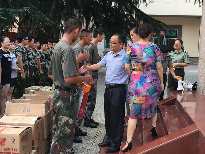 学生军训任务的教官与带队干部,受到了大家的热烈欢迎。