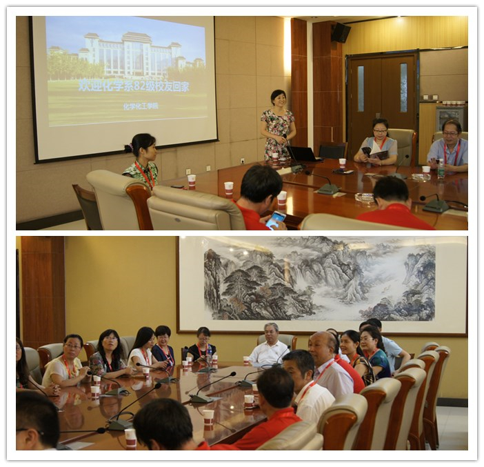 学校毕业30周年纪念大会结束后,学院党委书记高玲香邀请86届化学系20余名校友回到学院参观、座谈。院长薛东、副院长王晓、副书记王启明、党委秘书陈钿参加了座谈会。