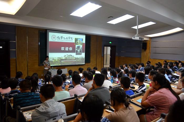 报告会上,高玲香教授用通俗易懂的语言,旁征博引,围绕“学院文化与学院精神、大学本科教育的主旨与内涵、大学四年学业规划与未来职业规划”三个主题与新生进行了深入交流。高玲香教授首先对2016级新同学表示欢迎和祝贺,并鼓励大家克服困难,学会独立,尽快适应大学的学习和生活。接着,她从历史沿革、学科优势与特色、师资队伍与教学、重大科研成果、学术交流与合作、本科生培养等方面向同学们介绍了学院的基本概况。通过讲解,同学们了解到经过几代化学人坚持不懈的努力,学院已在西北地区乃至全国具有一定的学科优势和影响力,这更加坚定了大家选择师大、选择化学的决心。高玲香教授勉励同学们要让大学成为自己人生成长的阶梯,要对自己的人生和理想进行思考和规划,并为之付出行动,不虚度大学四年时光;要提高自主学习的能力,努力适应大学的教学方式,选择适合自己的学习方法,培养良好的学习习惯。高书记还重点向同学们展示了学院的形象标识,解读了学院院徽、教风和学风的内涵,鼓励大家在今后的学习生活中用心感受“包容、务实、创新、精进”的学院精神,并把学院的文化精髓内化为指引自身成长发展的准则,在未来的大学生活中及早规划,通过脚踏实地的奋斗,实现自己的人生梦想。
