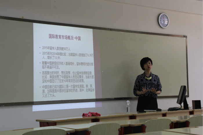 首先,陕师大附中冯军副校长热烈欢迎各位老师和同学们的到来,并安排同学们简短参观了国际部。随后,两位老师和同学们一起参与了国际部王石和腾青老师的化学和商务两个科目的双语教学课堂。同学们既领略了化学课堂上专业化学英语名词的冗长、复杂,也感受到了商务课堂上用英语解决实际公司运营问题的有趣和形象。课堂上,化学卓越班的同学们与师大附中国际部的同学老师们进行了互动和交流,给知识的讲解过程注入了活力。之后,国际部张蓓校长为老师同学们分析了目前中国的留学形式,讲解了小说网