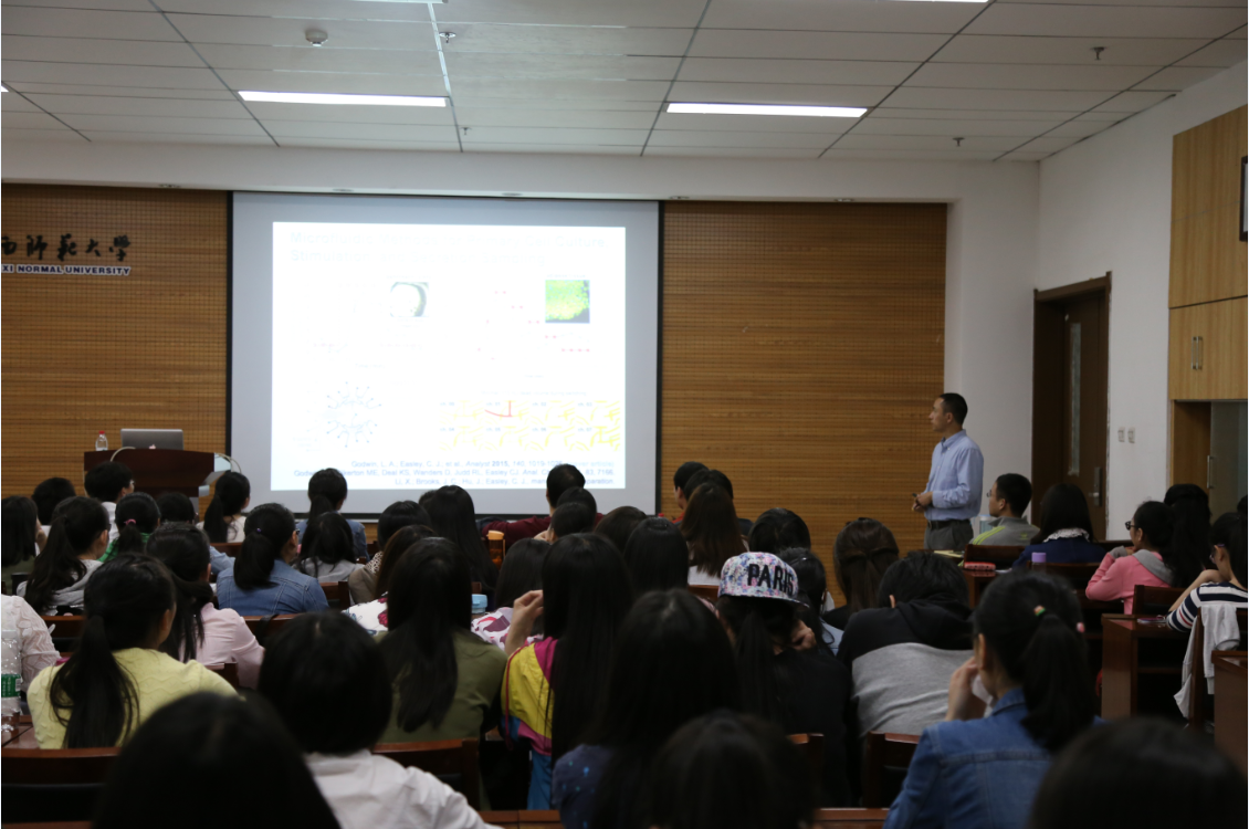 为了激发学生的科研兴趣,开拓学生的考研视野,引导学生树立远大志向,2016年4月21日晚7:00,奥本大学陈明博士应邀以“世界这么大,你该去看看”为题,分享了他在美深造的求学经历。2013级全体非师范生及部分研究生聆听了报告,报告会由2013级辅导员谢遵园主持。