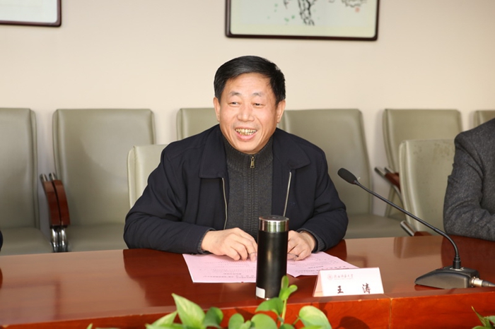 程光旭校长代表学校对王作弟董事长一行表示欢迎,对其捐资建设“创新药物研究中心”表示感谢。他简要介绍了学校办学历史、学科建设、科学研究、学生规模和办学特色。程光旭指出,陕西师大人文社科底蕴深厚、优势明显;理工科人才聚集、势头强劲,化学、材料科学、工程学和农业科学4个学科进入ESI全球排名前1%。近年来,学校十分重视政产学研合作。通过合作,探索出了在人才培养、科学研究、持续发展方面的经验和模式,既促进了企业科研人员参与研发,又拓宽了学生就业渠道,实现了双赢。他希望研究中心要以创新为核心,充分利用双方年轻团队的智力和市场优势,学校做前期研发,企业做生产和市场,力争做出特色,做出成绩;希望王作弟董事长持续关注支持研究中心的发展,进一步深化和拓宽合作领域。