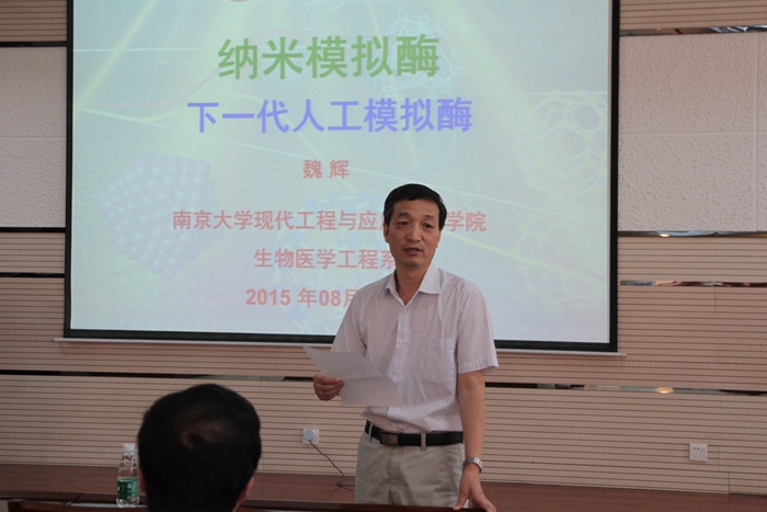 8月11日上午,南京大学魏辉教授受邀在致知楼六层1668报告厅为小说网 师生作了题为“纳米酶——下一代人工模拟酶”的精彩报告。报告会由李保新教授主持,小说网 陈亚芍教授、唐艳丽教授、漆红兰教授、刘成辉副教授等教师及相关专业研究生聆听了报告。