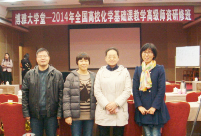 物理化学教研室宋永红老师、无机化学教研室李淑妮老师、有机化学教研室石先莹老师以及分析化学化学教研室杜建修老师参加了由北京大学化学与分子工程学院与北京大学出版社于2014年11月14—16日联合举办“博雅大学堂—2014全国高校化学基础课教学高级师资研修班”。
