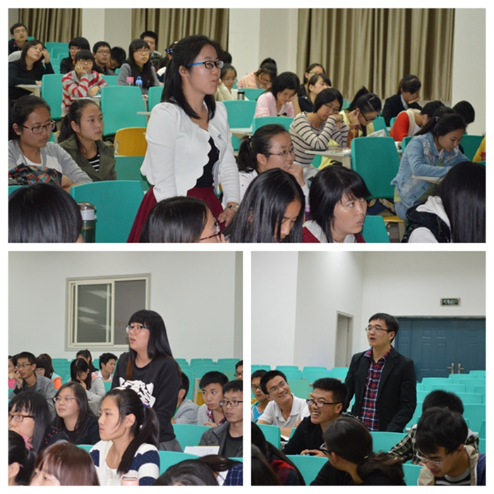 报告会上,杨承印教授以“提高专业素养,抓紧教师技能训练”为主题,帮助同学们进行了学业发展规划。杨老师不但对师范专业的发展前景做了详细解读,而且结合自身的教学实践经验和新课程改革下的教育需求,为大家分析了免费师范生的就业优势,并号召同学们刻苦学习专业知识,踏实练好教学基本功,全面提高从事教师教育工作的技能。杨老师特别引用笛卡尔的名言“我思故我在”,勉励免费师范生要努力做到专业素养和教学基本功二者兼顾,既做好人文科学的学习,同时也要做好实验,做好专业上的研究。在具体谈及从教技能训练的问题上,杨老师强调,教学有法,教无定法,贵在得法。只有明确课程讲授的教学标准、掌握适当的哲学和教育心理学知识以及做好教学设计,才能将课上好。在交流中,杨老师还向大家推荐了许多教育学方面的经典著作,鼓励同学们提高教育教学的理论素养。