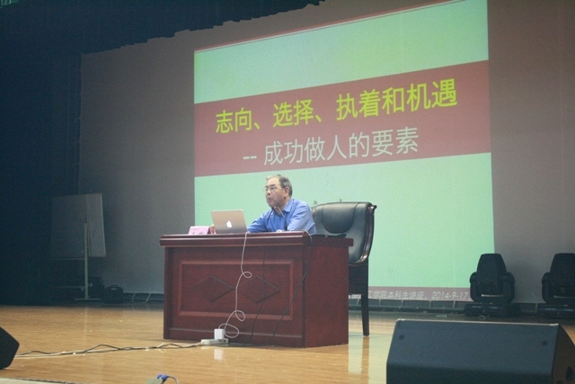 2012级本科生做了做了题为“志向、选择、执着和机遇——成功做人的要素”的主题报告。学院副院长李保新、分党委副书记王启明、分团委书记陈钿、2012级辅导员牟朝丽参加了此次报告会。报告会由王启明主持。